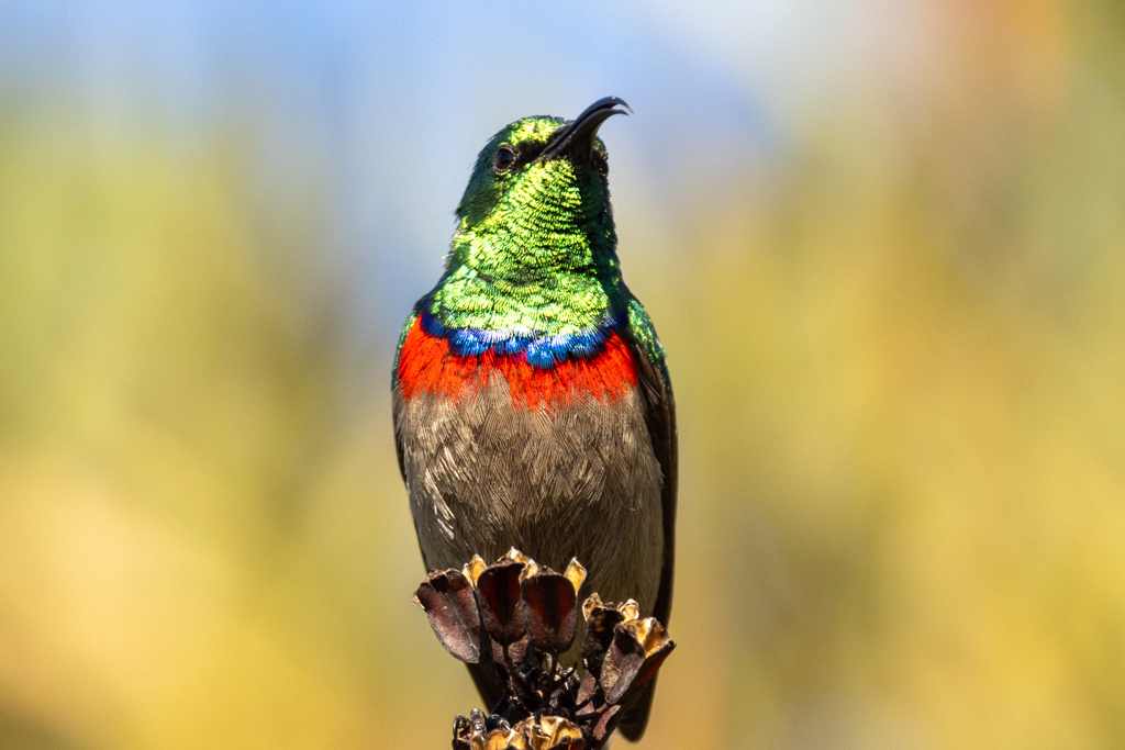So I have put together a post of the birds we encountered in our three week visit to South Africa with the American Horticultural Society this year. Although my original focus on the journey was the many plants we would see I was overwhelmed by the colorful bird species in South Africa. Altogether I have about 50 species from our short visit and the experience will stay with me for a long time. I’ve put them below in basically the order that we saw them as we journeyed around Cape Town, then the western Cape regions and finally over to the Eastern Cape near Kruger. I’ve duplicated some of the most beautiful and the names are under the pictures of the birds. Please enjoy.
